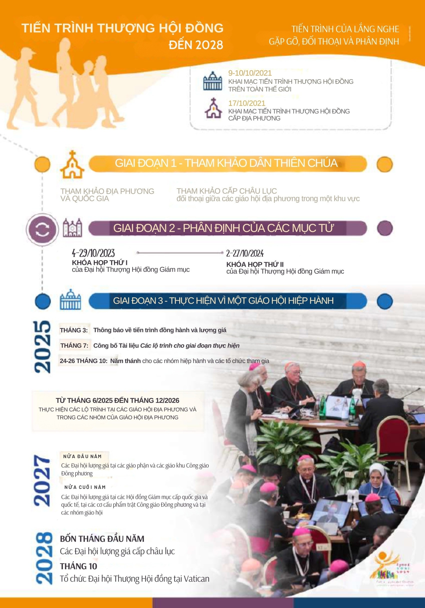 - Tháng 6 năm 2025 - tháng 12 năm 2026: Các hoạt động thực hiện tại các giáo hội địa phương và tại các nhóm trong các giáo hội này;